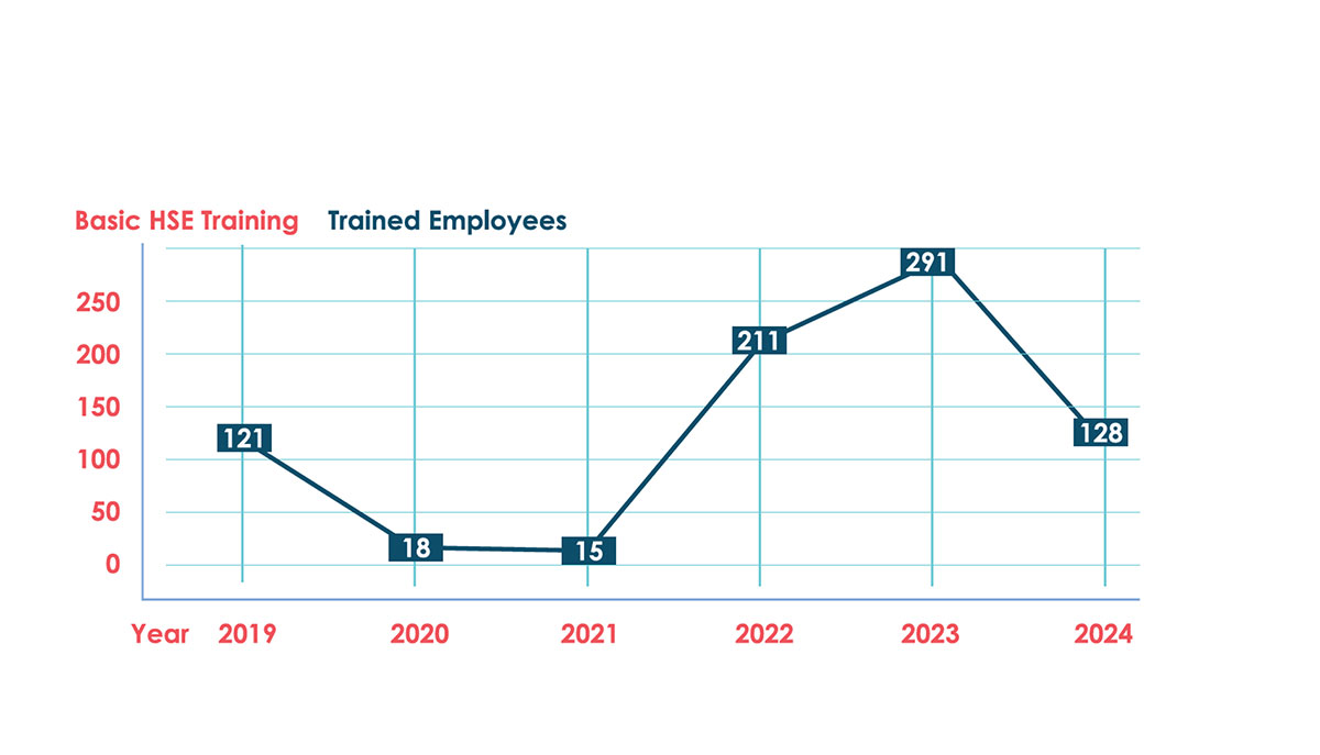 The training introduces employees to the HSE Policy and Principles, as well as the ompany’s HSE Excellence Rules. Interactive exercises help them recognize hazards and understand related contributing factors. Emphasis is on preventing human error, implementing protection measures, and ongoing training. Firefighting principles and hands-on training are also included, and HSE reporting, communication, and interventions are covered